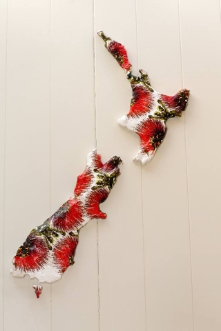 Annie Spence is a self-taught artist from Opito Bay, who has a love and infinity with New Zealand. She designs three dimensional wall sculptures of New Zealand, specialising in topographical detail, to show the depth and contours of our beautiful country. Annie uses a high quality plaster, hemp and wire as her medium. The ‘Maps’ are available in antique copper, pohutukawa flower and rusty effects.